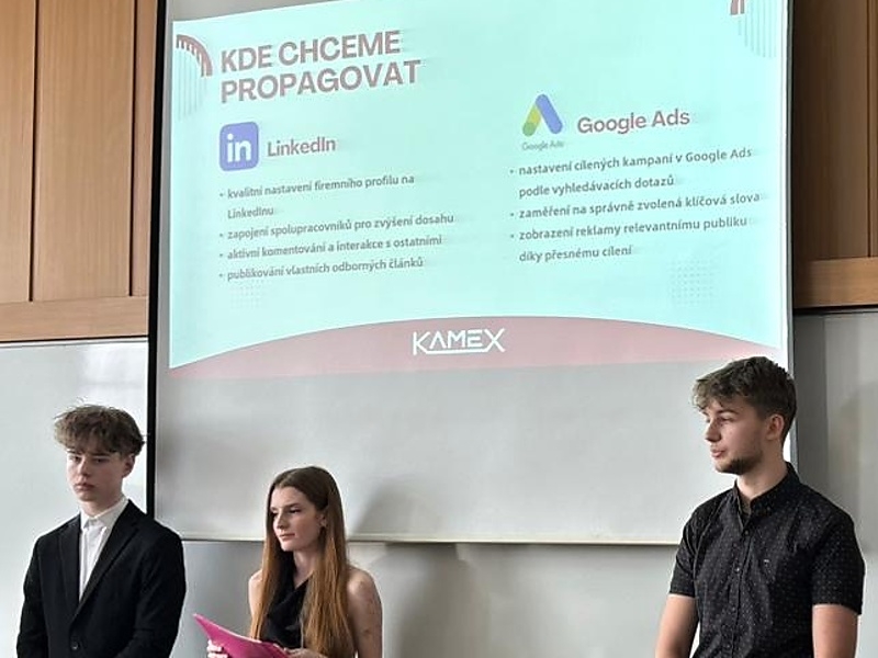 Vybraným talentům pak byl nabídnut individuální koučink přímo od ředitele společnosti KAMEX, pana Dočka, který již v průběhu příprav poskytoval studentům odborné konzultace. „Studentské nápady nás překvapily svou kreativitou i realistickým pohledem na dnešní trh. Je skvělé vidět, jak mladí lidé přemýšlejí o podnikání, a že jejich návrhy mají skutečný potenciál. Proto jsme se rozhodli některé z nich realizovat a dále rozvíjet potenciál některých studentů formou koučinku a mentoringu,“ zmínil Jiří Doček.